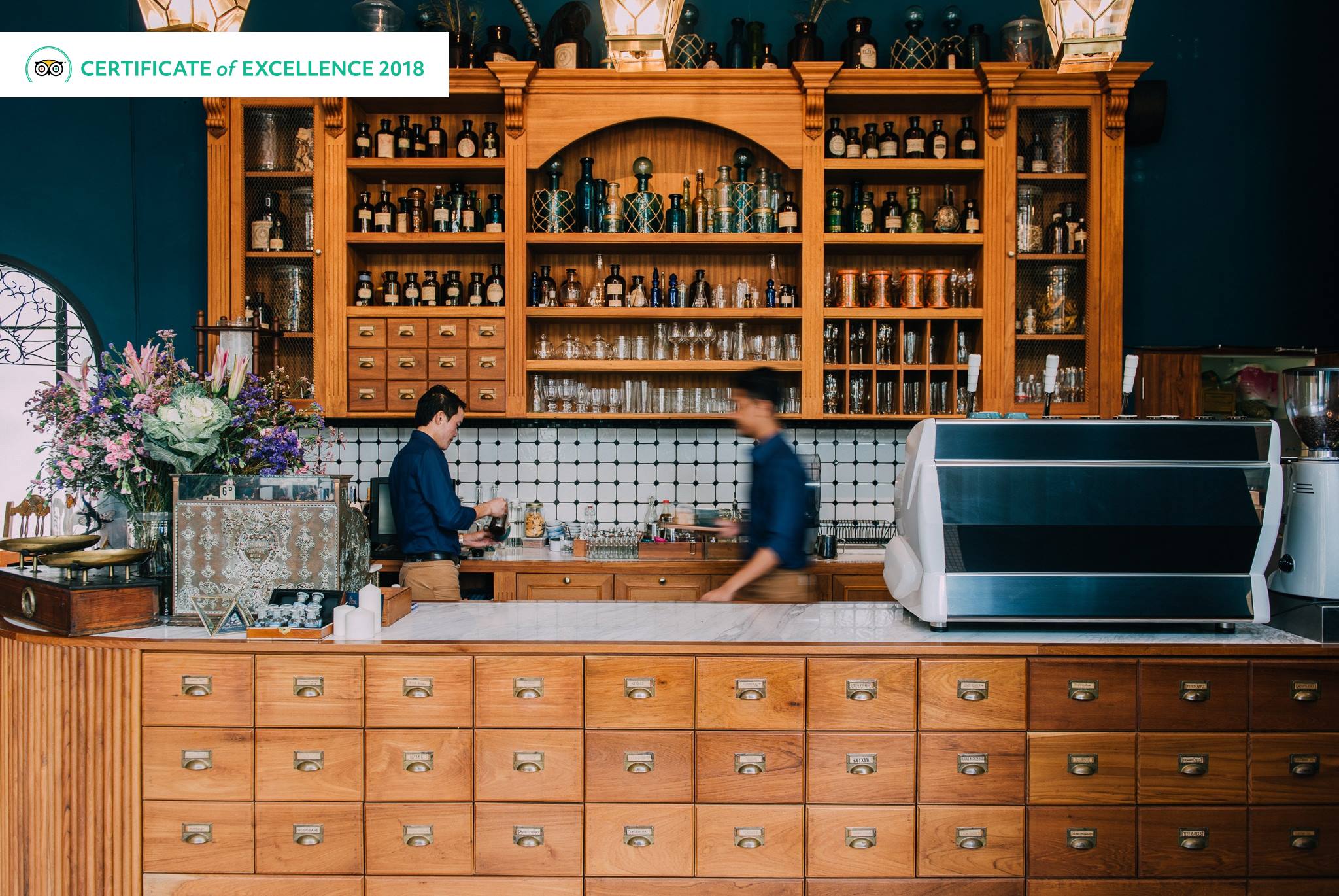 Featherstone is a Bangkok cafe that leans heavily into its unique, mystical apothecary and vintage theme, creating a visually stunning atmosphere. It's a place where creative, beautifully presented drinks and a menu of well-executed dishes, particularly pastas and pizzas, are served with notable warmth and attentiveness.
