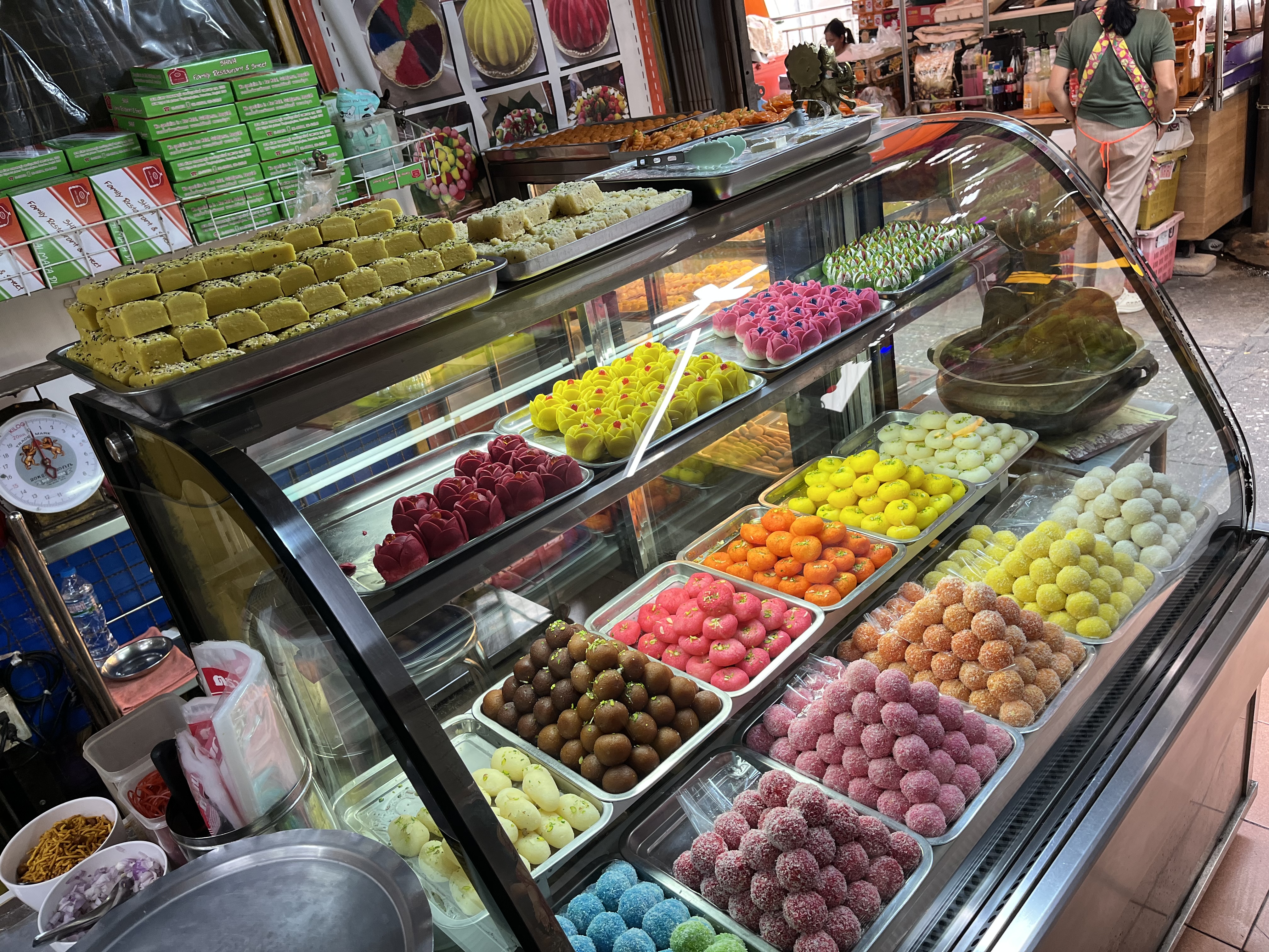 The atmosphere of this Indian tea shop is amazing, with a variety of delicious desserts, all of which look delicious.