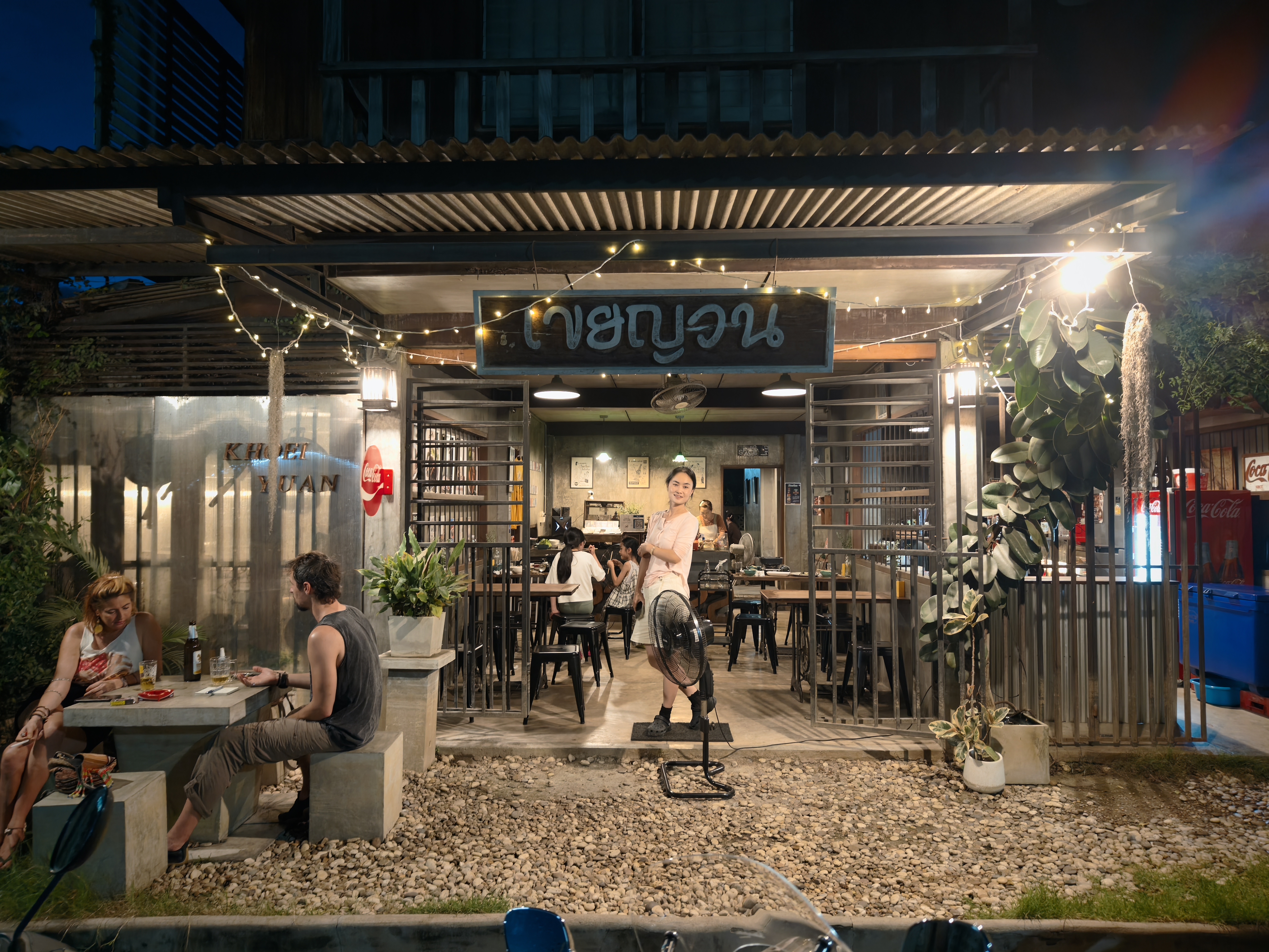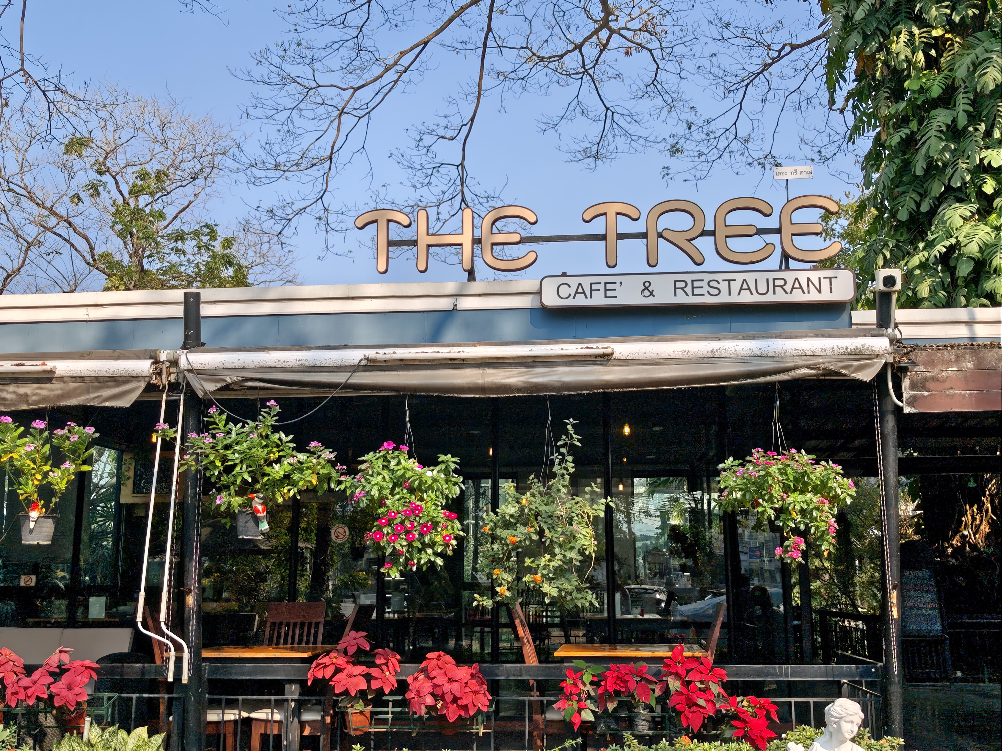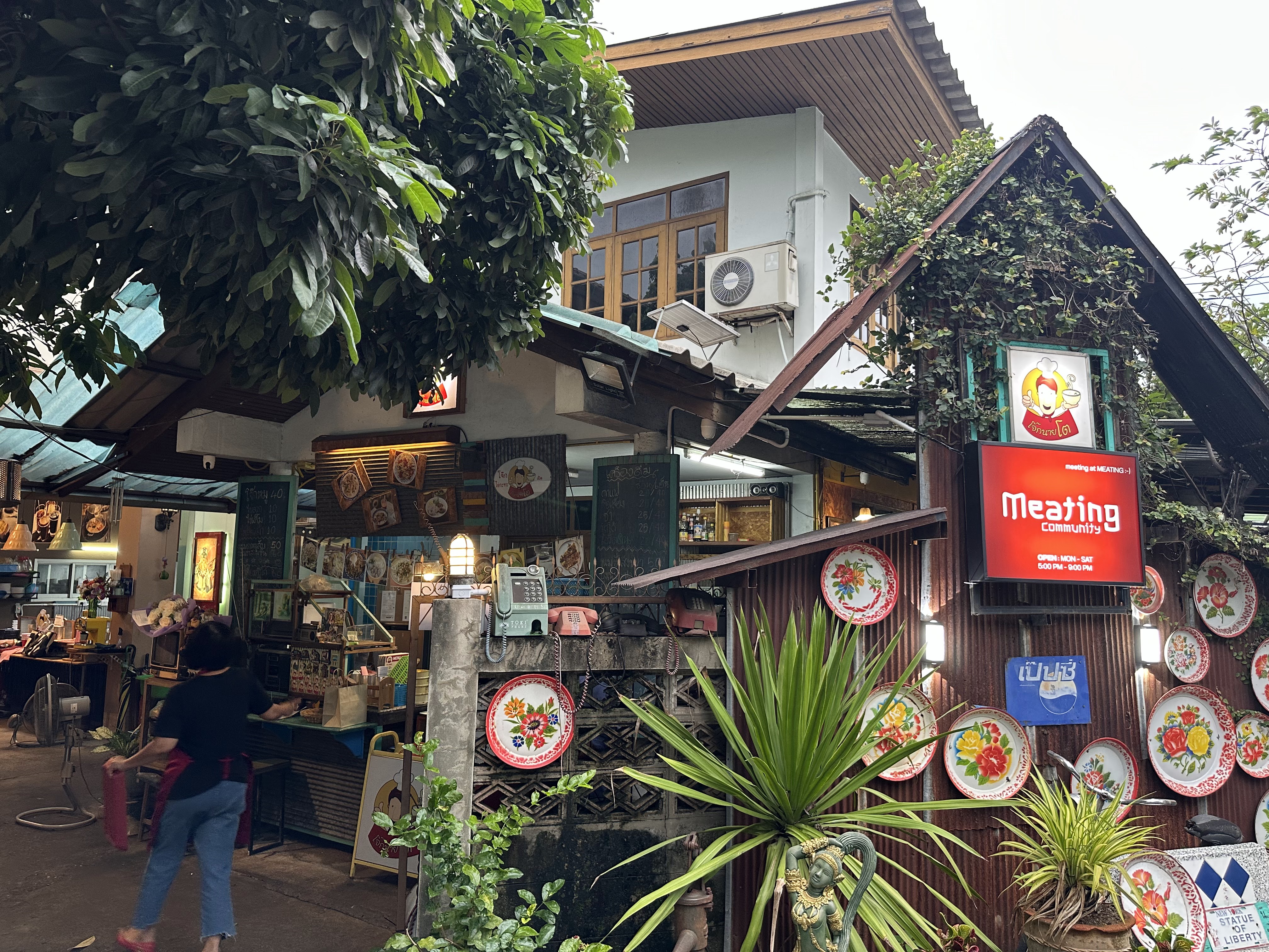 This cafe offers a tranquil garden setting under a large tree, providing a peaceful escape from the city bustle. It's a dog-friendly spot with a diverse menu ranging from Western dishes like pizza and pasta to Thai favorites, all served with friendly hospitality.