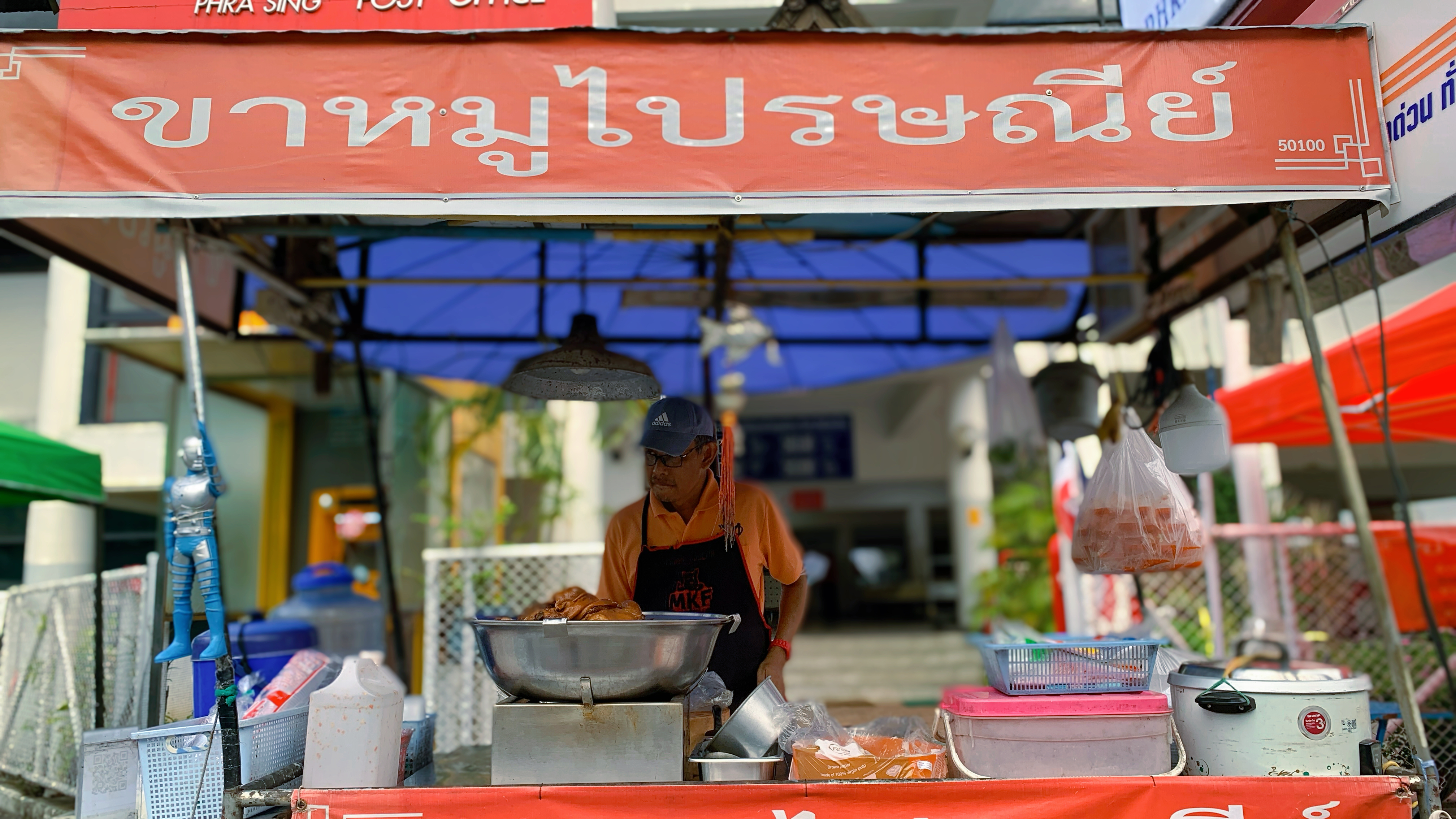 Point to what you want or use your phone's camera to show the vendor a photo of the dish. Most stalls in busy areas like Chang Khlan Sub-district and Si Phum have visual menus or numbered items, and vendors are accustomed to non-Thai speakers. Cash is standard at these spots; many don't accept cards.