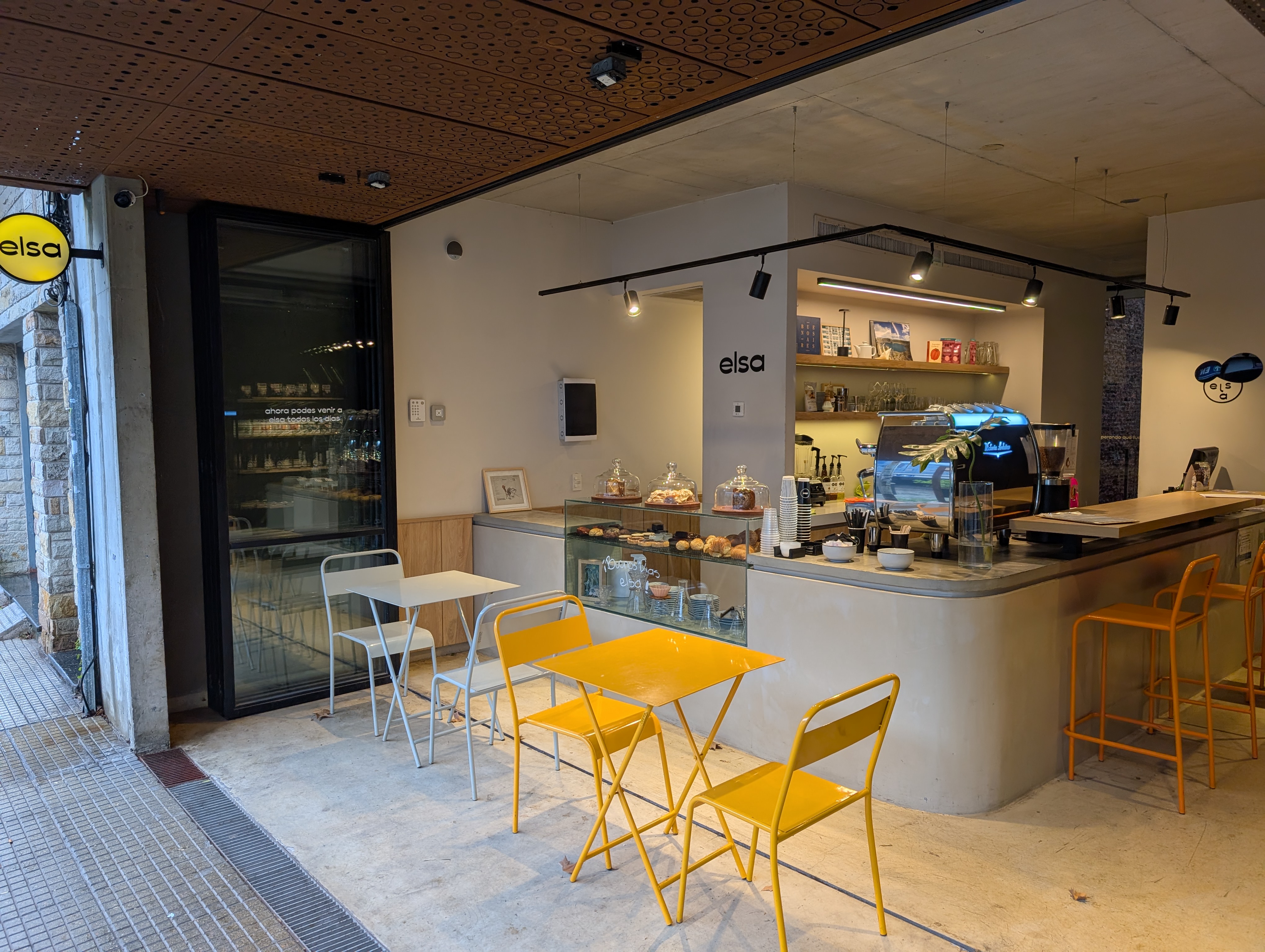 Elsa Cafe is a bright, spacious spot in Palermo Hollywood that doubles as a co-working haven with its ample seating, Wi-Fi, and power outlets. It's particularly well-suited for solo diners and groups, offering a relaxed atmosphere with a lovely patio and a full bar. While the food is generally good, especially the Basque cake and brunch items, service can be inconsistent, with a notable trend of long waits and counter-service confusion.