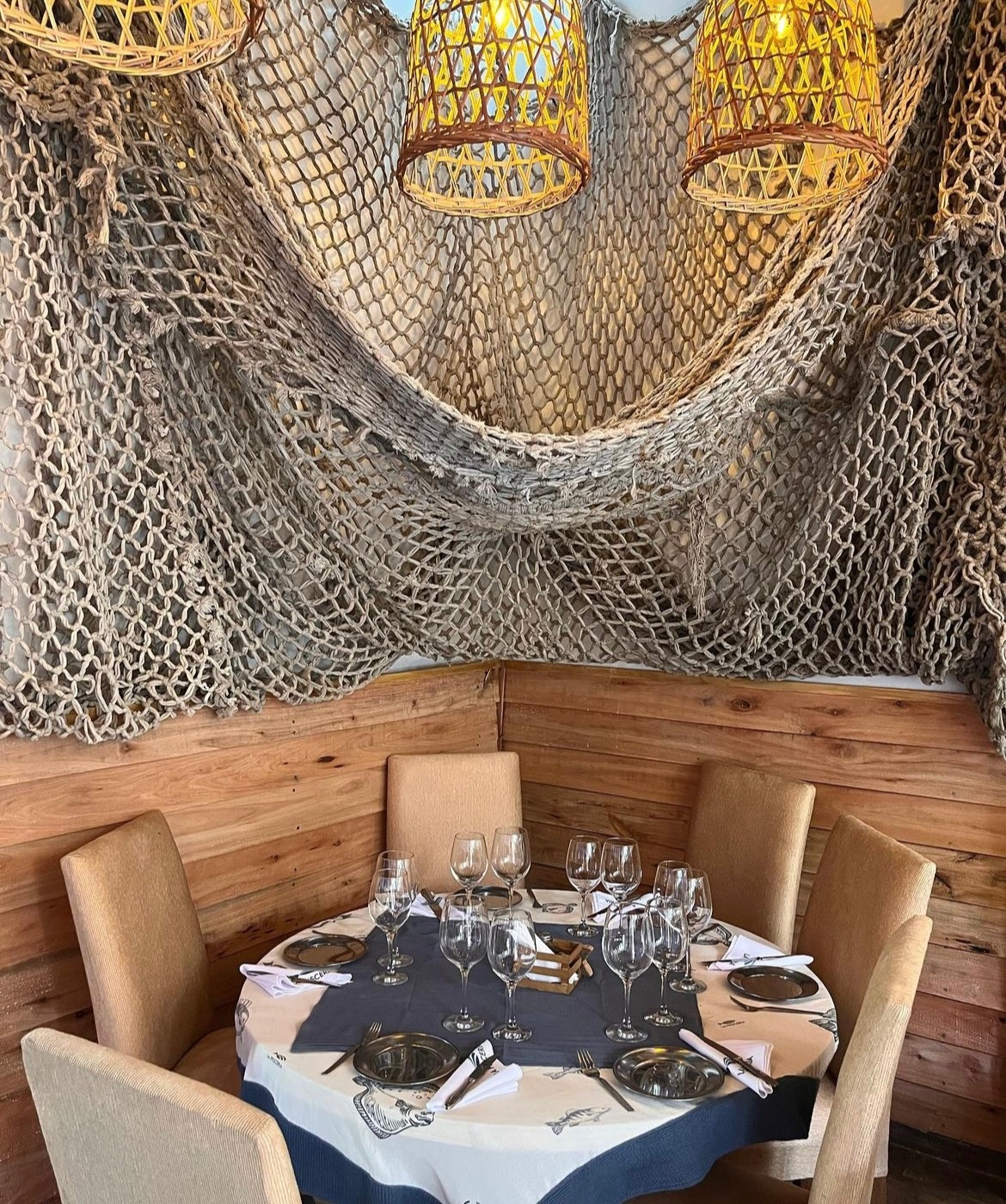El ambiente es hermoso. Fuimos de día, pero me imagino que de noche debe ser divino con esas lucecitas y la parra en el patio.