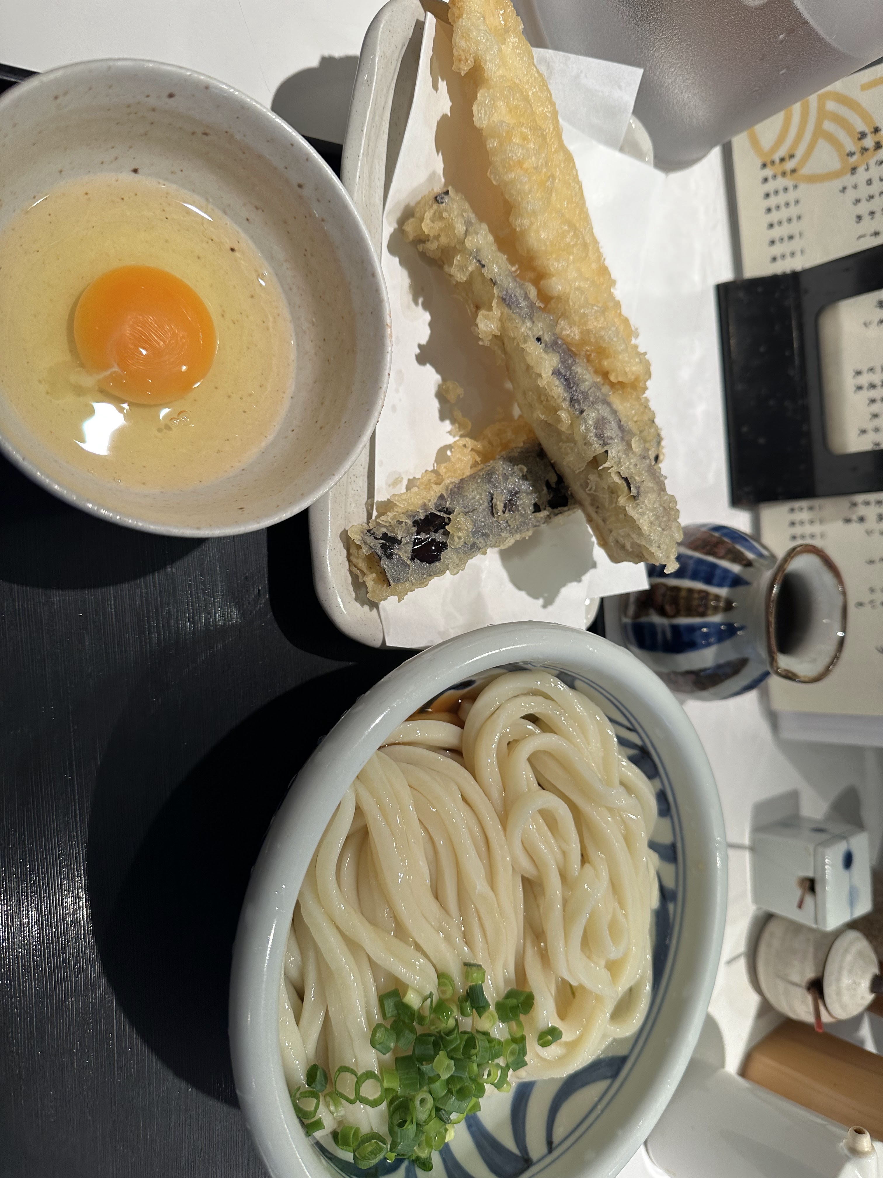 “The udon noodles were smooth and Sanuki-style. They were medium-thick with pure white skin and a satisfying texture.”