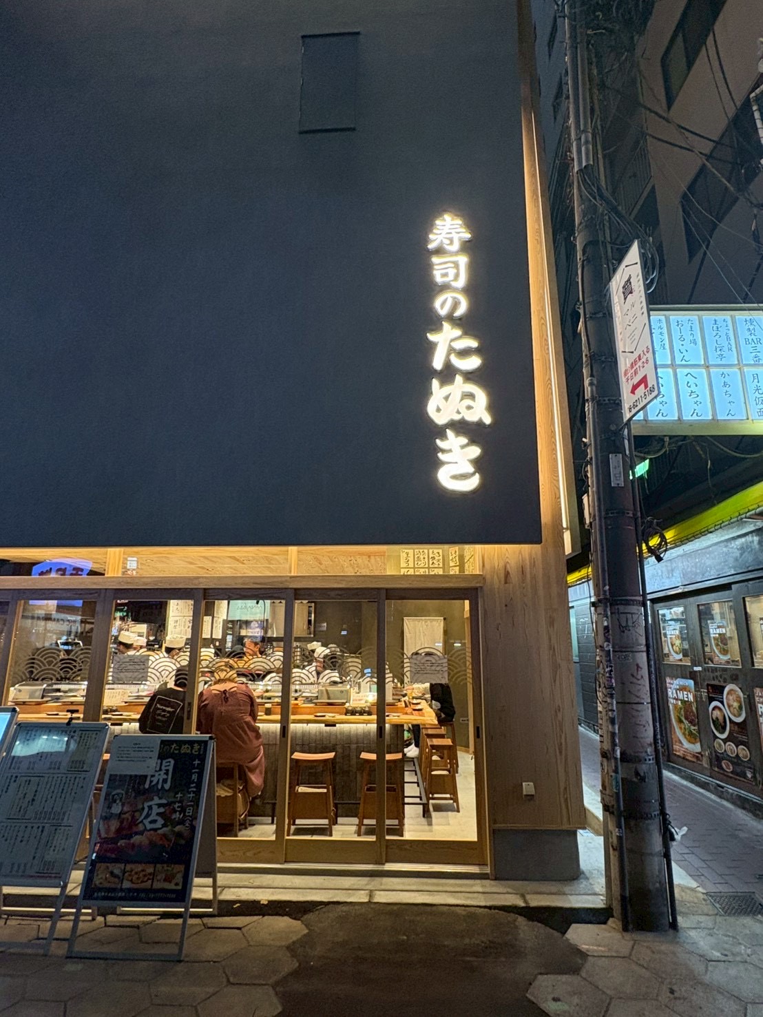 This casual sushi spot offers incredibly low prices, with nigiri starting at 99 yen and drinks from 190 yen. It's open from 5 PM to 10 AM, making it a versatile option for late-night bites or early morning meals. The counter seating is comfortable for solo diners, while the second floor accommodates groups.